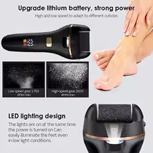 Vår elektriska fotfil tar effektivt bort förhårdnader och ger dig silkeslena fötter hemma.